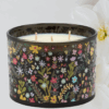 A candle from our Inspiration & Blooms Collection displaying a full wrap-around design of vibrant hand illustrated florals on dark glass. Inspirational candle features soy-based wax and 3 fabric wicks with 30 hours of burn time activating a calming Violet scent. Our Dark Florals candle includes a dust cover and plastic lid for protection and enhanced appearance on store displays. An inspirational gift perfect for an everyday home accent.