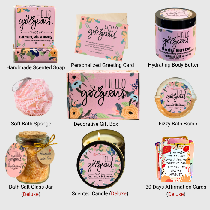 The “Hello Gorgeous Self Love Gift Box” is a delightful treat designed to celebrate and embrace her unique beauty. This gift box is not just about pampering her with luxurious items; it’s about nurturing a mindset of self-acceptance and confidence.