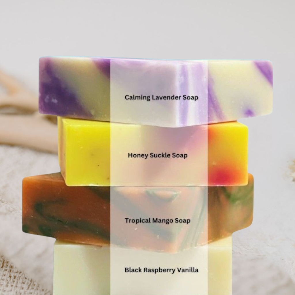 Introducing our exquisite 4-piece soap gift set, a delightful collection of handmade, lightly scented soaps perfect for any occasion. This gift set is perfect for anyone looking to indulge in the art of relaxation and self-care, making it an ideal present for birthdays, anniversaries, or simply as a treat for yourself or a loved one.