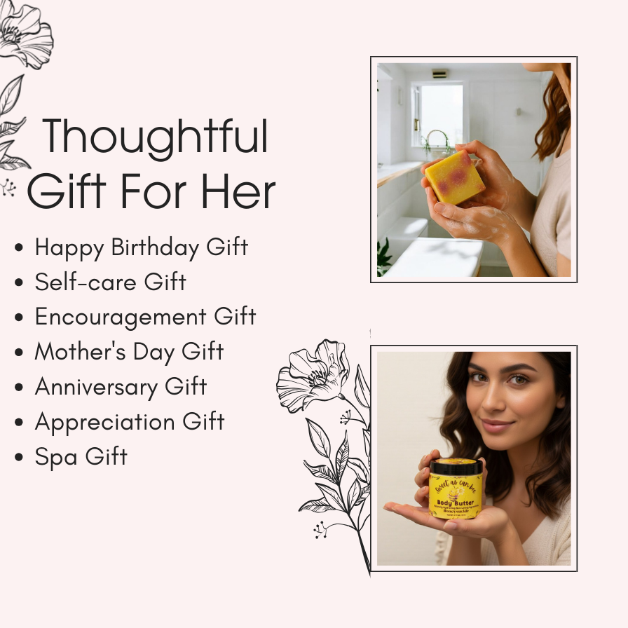 The sweet As Can Bee Body Butter & Soap 5 Pcs Spa Gift Set is ideal for any occasion, whether it’s a birthday, Christmas, a thank you gesture, or an anniversary. This gift set is a perfect way to show appreciation and love. The soothing scents and high-quality ingredients make it a thoughtful and indulgent present, sure to delight anyone who receives it.