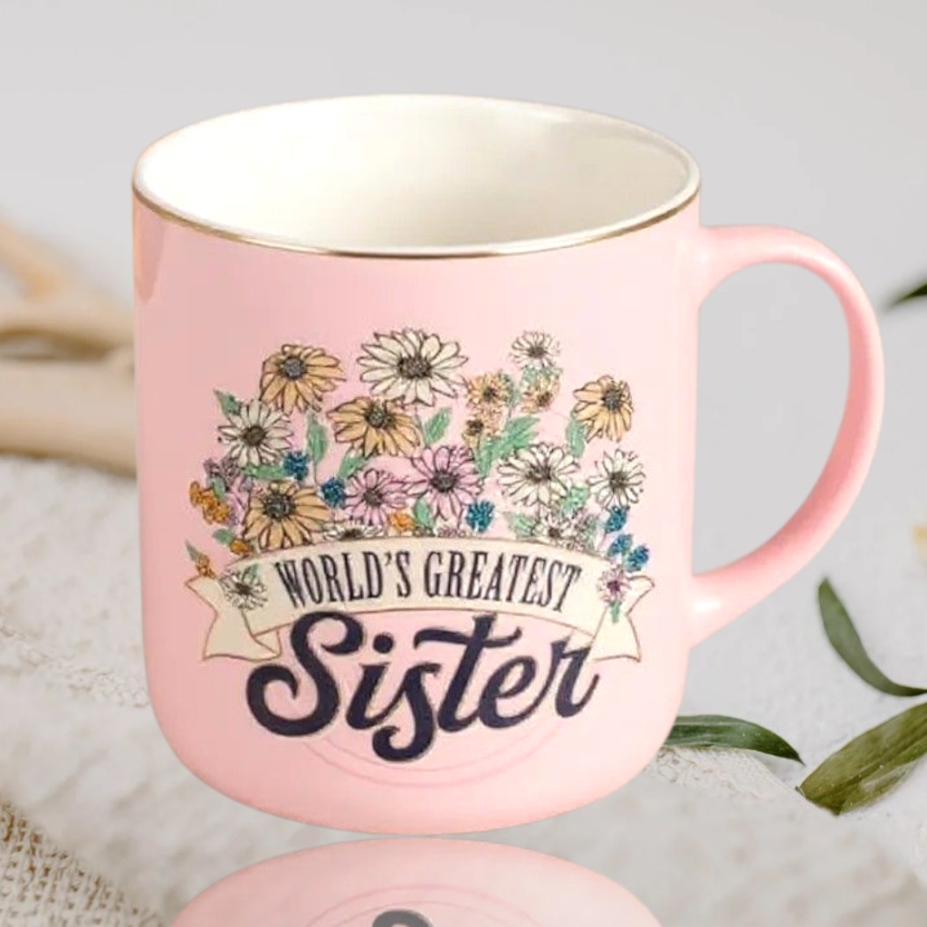 World’s Greatest Sister Pink/white Daisy Ceramic Mug
