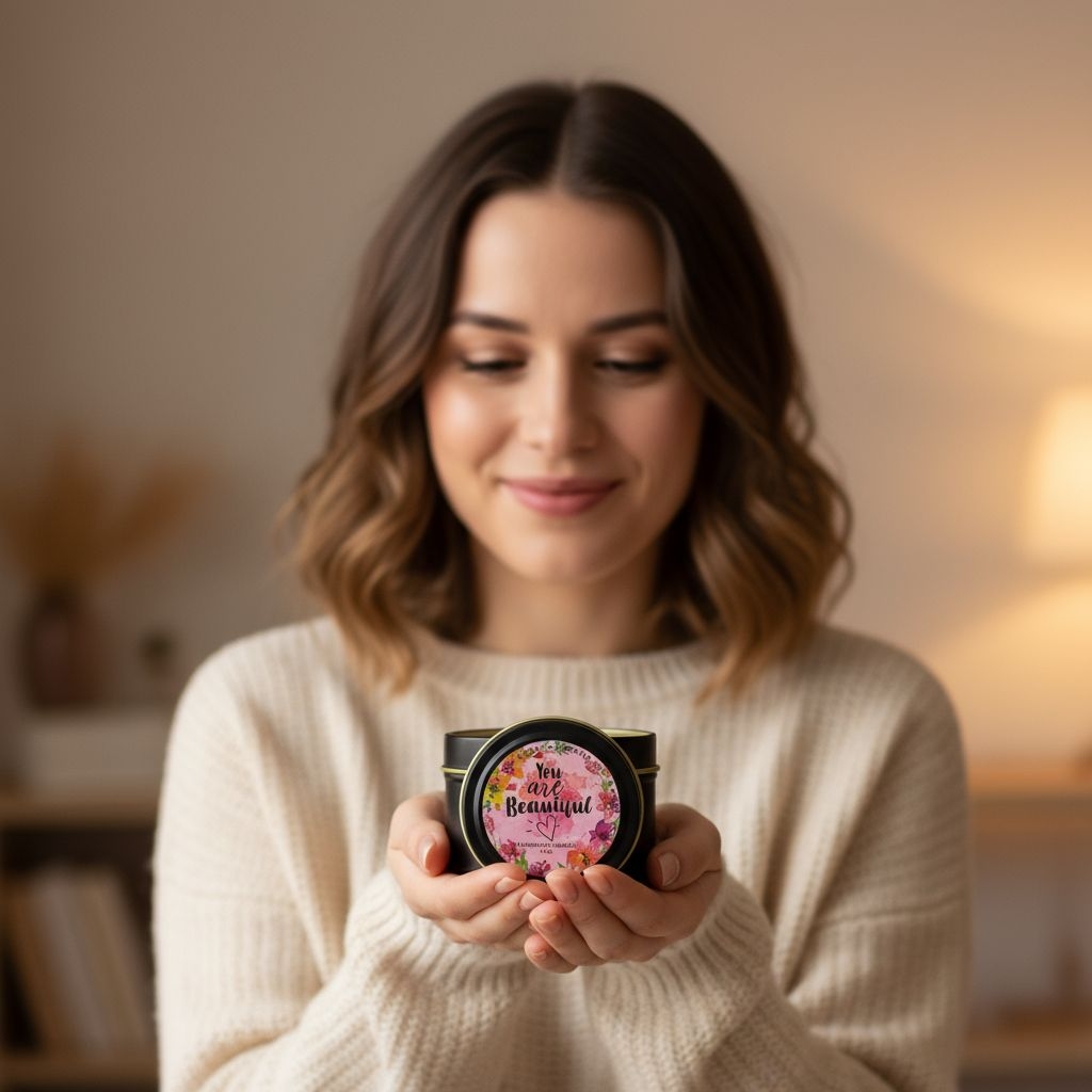 Introducing the ‘You Are Beautiful’ Candle – a game-changer for your self-care routine. Handmade with love, this candle is infused with high-quality wax and natural essential oils, creating a dreamy floral and citrus scent to transport you to your happy place. But it’s more than just a candle; it’s a daily reminder of your inner and outer beauty.